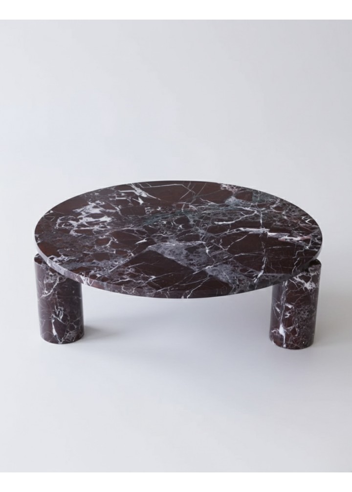 Yuvarlak formu sayesinde oturma alanlarında akışkan bir kullanım sunar. Minimal ama güçlü duruşuyla modern, modern-klasik ve seçkin yaşam alanlarına uyum sağlar. Her parça, vişne mermerin doğal desenleri nedeniyle kendine özgüdür.