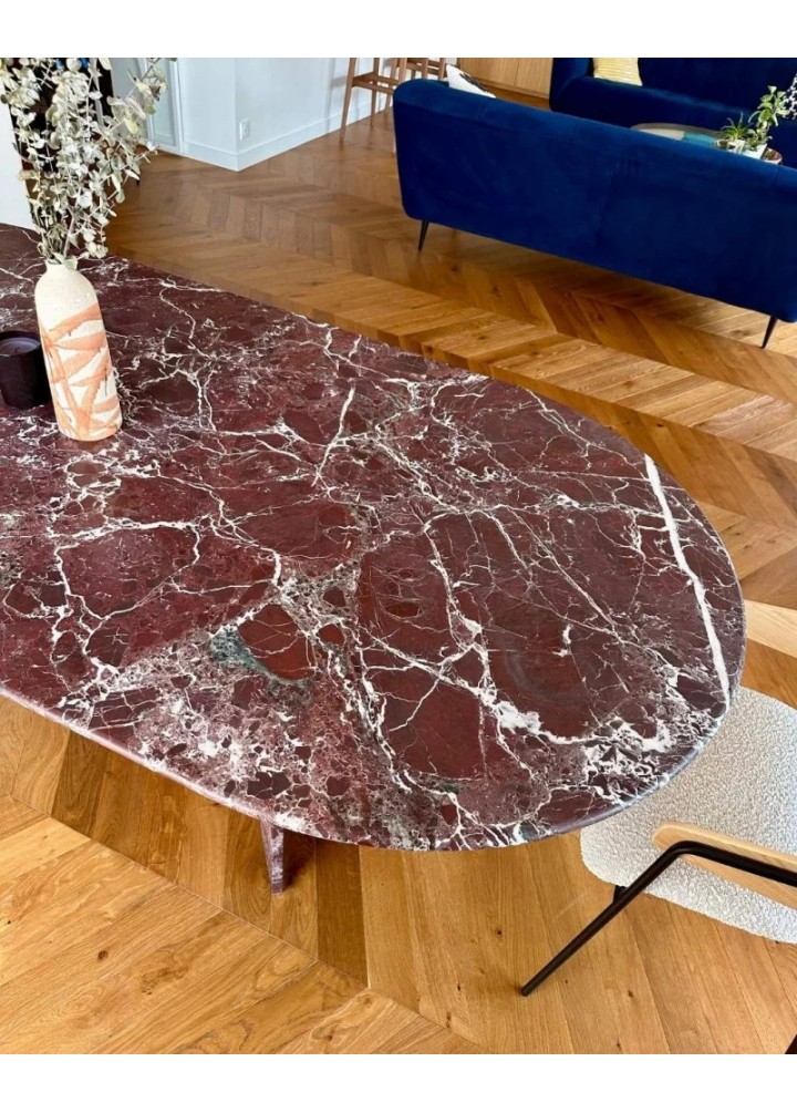 Rosso Levanto V Ayaklı Mermer Yemek Masası